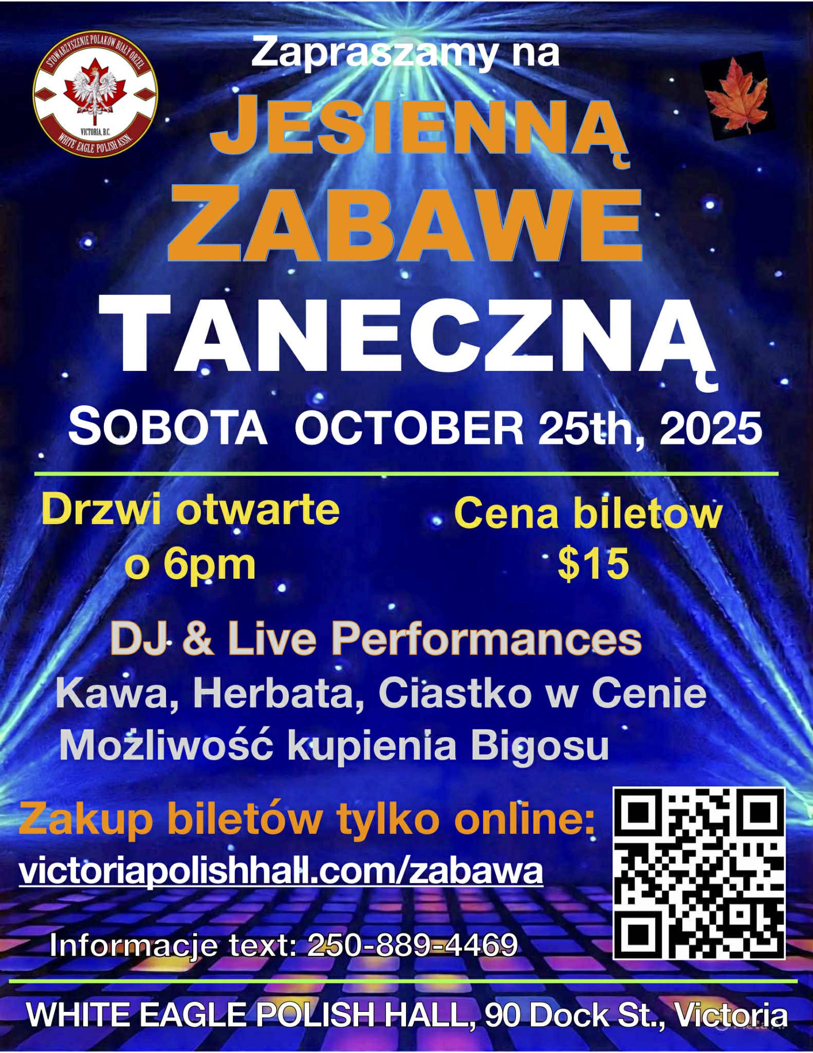 The White Eagle Polish Hall is located in beautiful James Bay, just a block away from Ogden Point and minutes away from downtown.